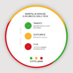 Procedere con l’applicazione dei successivi adesivi, mantenendo, tra ogni pois, la distanza di sicurezza imposta dalle regole ministeriali vigenti